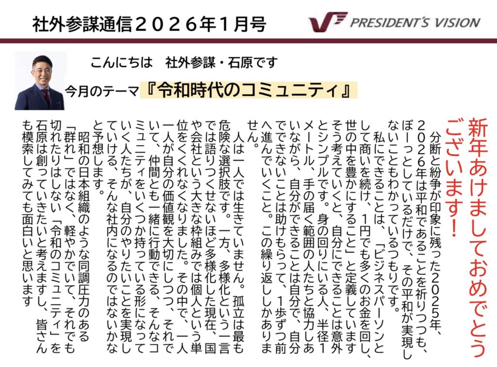 社外参謀通信2026年1月号を発行いたしました!